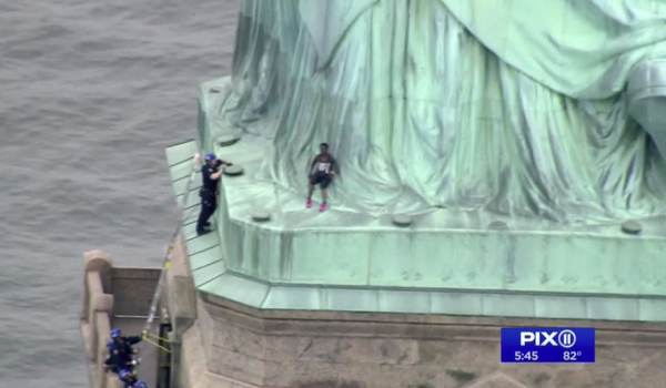 A female protester created a 4-hour standoff with the police after climbing the Statue of Liberty on Independence Day.
